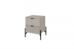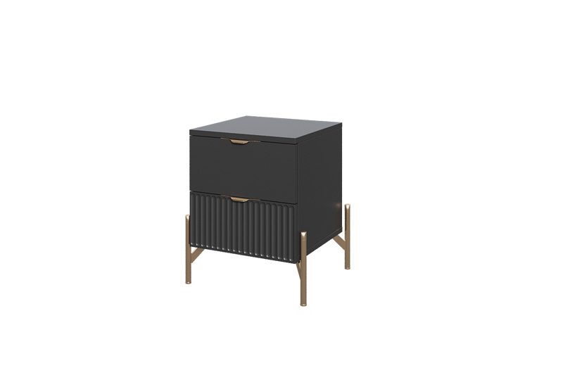Прикроватная тумба «Нео» выполнена в современном минималистичном стиле с акцентом на строгую геометрию и выразительные детали. Декоративная рифлёная фасадная панель и изящные металлические опоры придают модели визуальную лёгкость и делают её актуальным элементом интерьера.